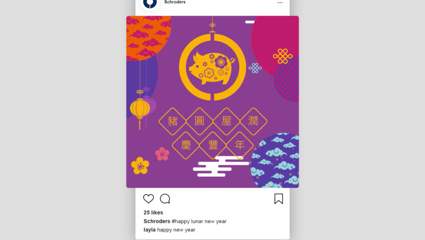 The final piece delivers a joyful and culturally resonant message, aligning with Schroders’ brand while celebrating the spirit of the Lunar New Year in an approachable and visually engaging way.